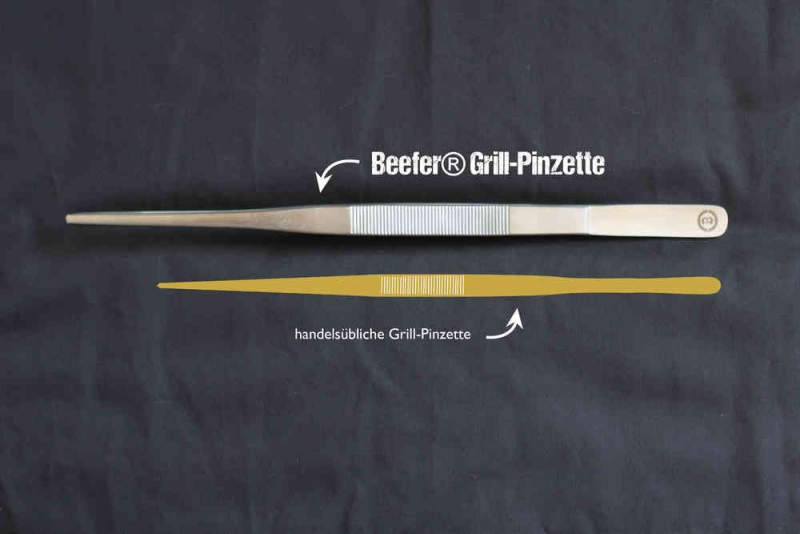 Dass wir dadurch Beefer Händler wurden? Liebe Freunde, schaut ihn Euch an. Dieses Meisterwerk an Ingenieurskunst! Unscheinbar, wie alles wirklich Wichtige auf dieser Welt, und voller Kraft im Inneren. Blender zu sein, außen hui und innen pfui, überlässt er anderen. Das Design folgt der Funktion. Zweckmäßigkeit statt augenscheinlichem und vergänglichem Augenzauber. Schwer, haptisch, unhandlich; so hat das echte Männerspielzeug von heute zu sein und der Beefer erfüllt es perfelt. Leicht, handlich, smooth und soft überlassen wir gern den anderen ... Wer grillt, ist ein Mann, und der will sowas. Spüren, was Qualität und Langlebigkeit ist.