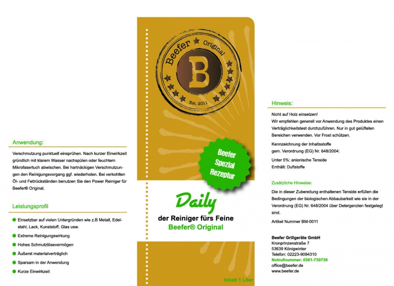 Dass wir dadurch Beefer Händler wurden? Liebe Freunde, schaut ihn Euch an. Dieses Meisterwerk an Ingenieurskunst! Unscheinbar, wie alles wirklich Wichtige auf dieser Welt, und voller Kraft im Inneren. Blender zu sein, außen hui und innen pfui, überlässt er anderen. Das Design folgt der Funktion. Zweckmäßigkeit statt augenscheinlichem und vergänglichem Augenzauber. Schwer, haptisch, unhandlich; so hat das echte Männerspielzeug von heute zu sein und der Beefer erfüllt es perfelt. Leicht, handlich, smooth und soft überlassen wir gern den anderen ... Wer grillt, ist ein Mann, und der will sowas. Spüren, was Qualität und Langlebigkeit ist.