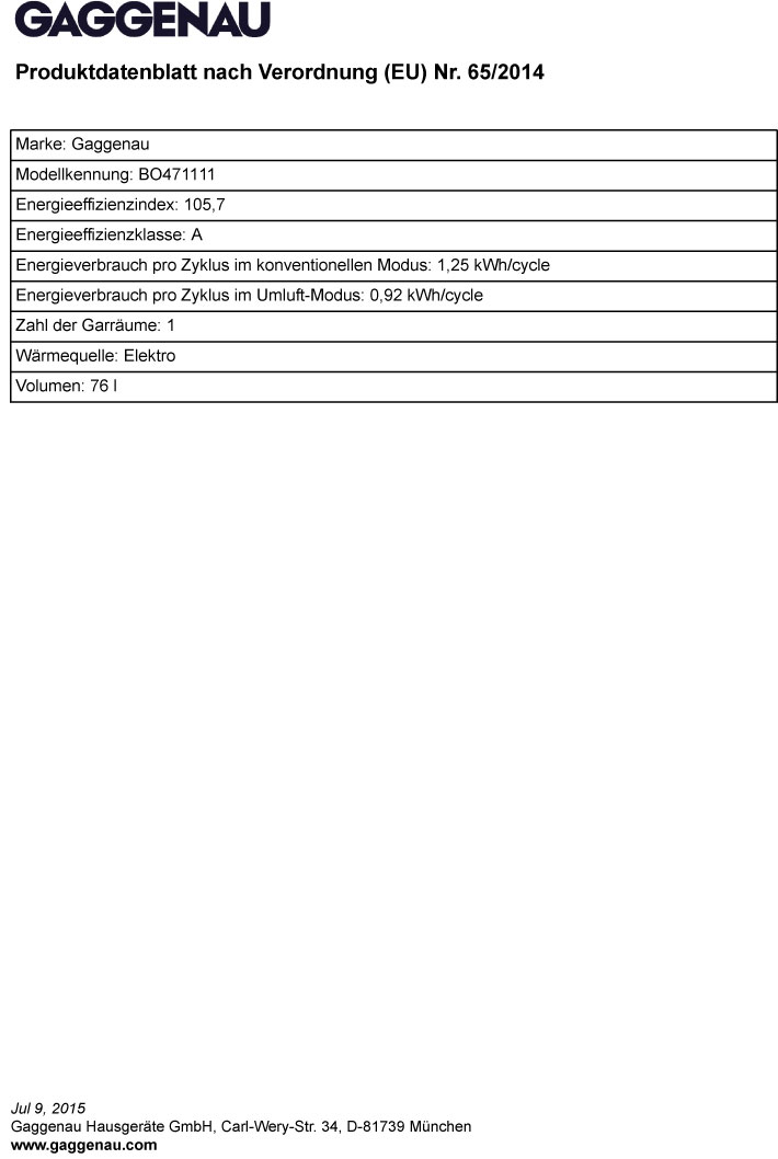 Gaggenau Back-Ofen Pyrolyse BO471111