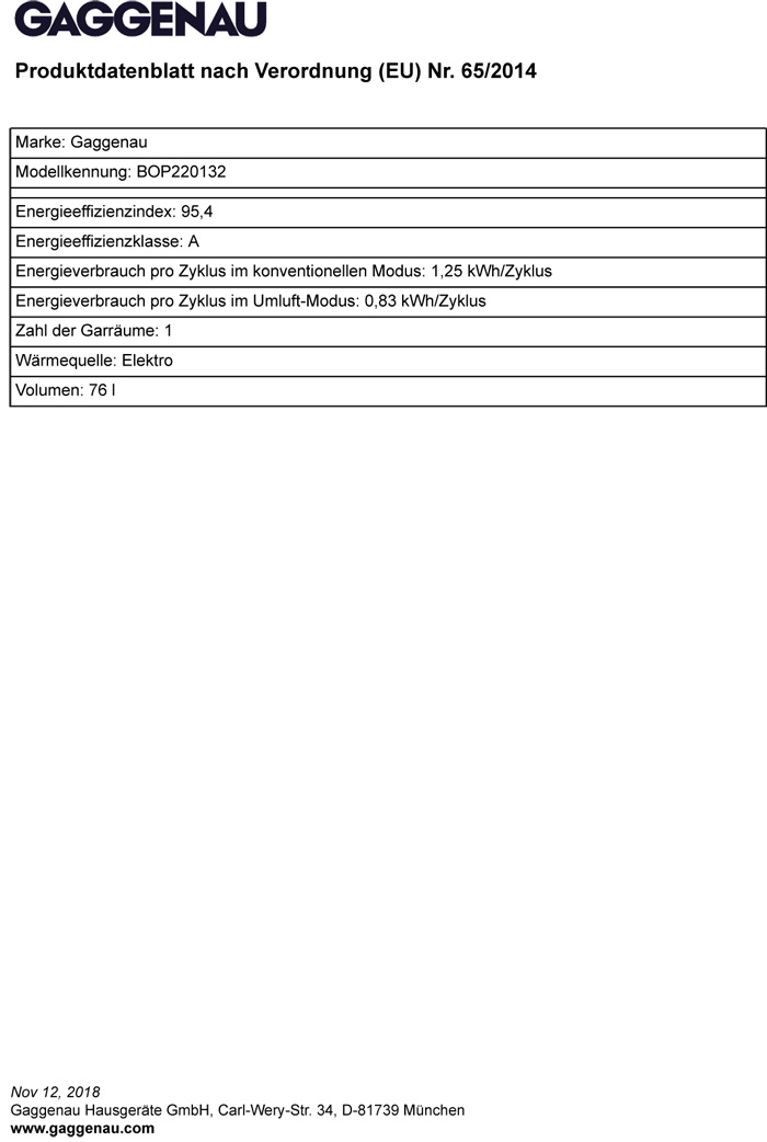 Gaggenau Back-Ofen Pyrolyse BOP220132