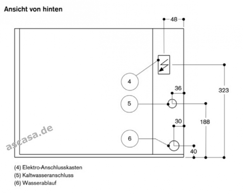 • Wasseranschluss (1) für Zulaufschlauch immer zugänglich halten; nicht direkt hinter dem Gerät positionieren