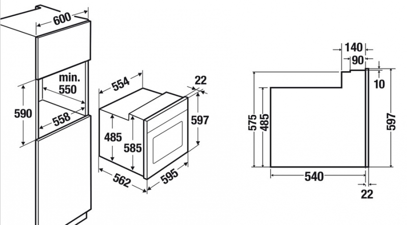 • Nischenmaße (mm/BxHxT): 560 x 590 x 550