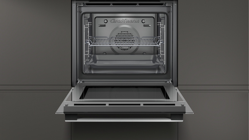 CircoTherm® Heißluftsystem: Einzigartige Rundumhitze, bei der die Heißluft mit hoher Geschwindigkeit gezielt um die Speisen geführt wird. Das Menükochen ist auf bis zu drei Ebenen gleichzeitig möglich. CircoTherm®, ausgezeichnet von Stiftung Warentest, gibt es nur von Neff.