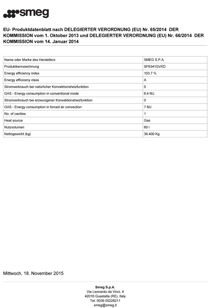 SMEG SF6341GVXD Einbau-Gasbackofen, Edelstahl, EEK: A, mit 5 Jahren Garantie!products_warranty_conditions