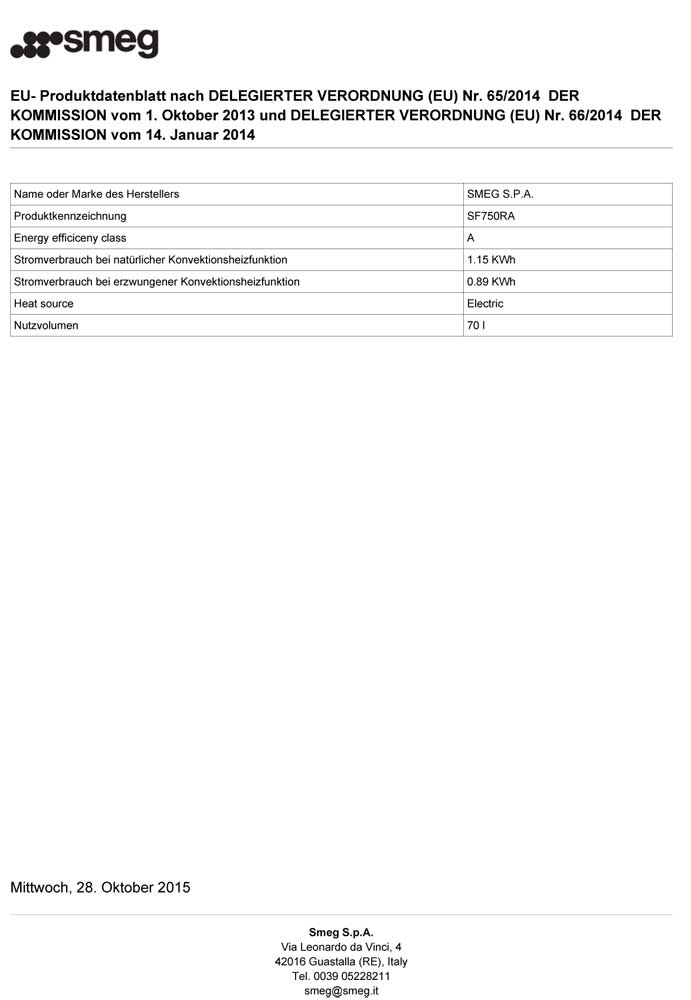 Energieverbrauch des Smeg Nostalgie Multifunktions Back Ofen SF 75 0R A: