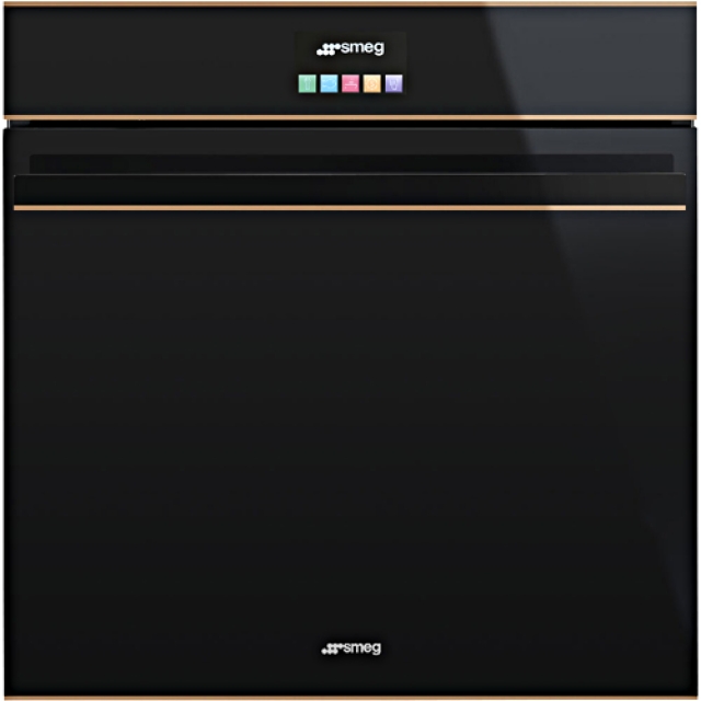 SMEG SFP 6604 NRE Einbau-Backofen, Schwarzglasfront mit Profilleisten in Kupfer, Dolce Stil Novo - Design, 2 Pyrolyse -Funktionen, 50 Automatikprogramme, 2 Halogenbeleuchtungen, Sonderfunktion "Auftauen", Energieeffizienzklasse A+