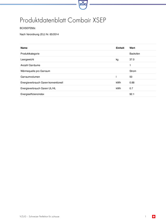 VZug Combair XSEP, Einbau Back-Ofen Crome-Class, BCXSEPZ60c, 2102760003