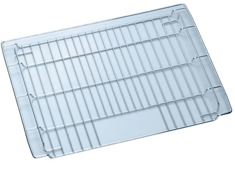 • Für Geschirr, Kuchenformen, Braten, Grillstücke und Tiefkühl-Gebäcke. Der Kombirost ist in der Mitte durch enge Abstände besonders stabil. Schöpfen von Bratensaft zum Begießen von Bratgut durch Schöpfloch möglich.