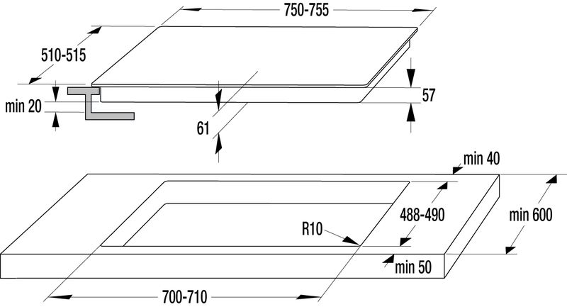 • Einbaumaß (HxBxT in mm): 77x710x490