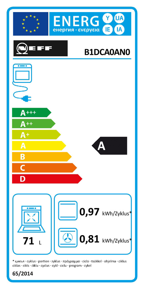 • Energieeffizienzklasse (gem. EU Nr. 65/2014): A