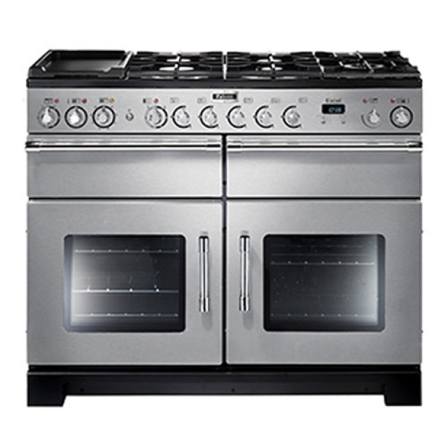 Wer sich für einen Falcon Range Cooker entscheidet, profitiert von einem größeren Ofen – oder auch von zwei Öfen; darunter einen  Multifunktionsbackofen mit Auftaufunktion, Heißluftgrill, Bräunungselement und Umluftfunktion sowie mit „Rapid Response“-Funktion für eine verkürzte Vorheizdauer. Zur weiteren Ausstattung gehören ein Hochleistungsgrill, ein Gas-, Glaskeramik- oder Induktionskochfeld, ein Wokring und eine Stauschublade. Und das alles in einem Herd, der nur 30 cm breiter ist als ein herkömmlicher Einbauherd.