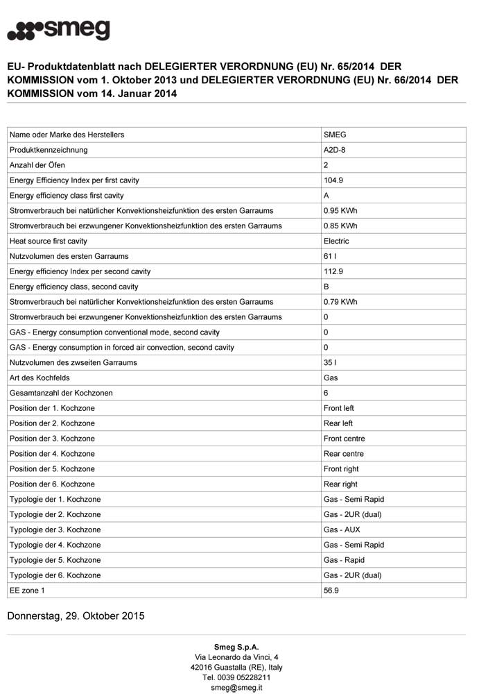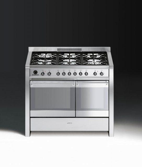 SMEG A2D- 8 Opera Kochzentrum, Edelstahl, 100 cm, Gaskochfeld mit 6 Kochzonen, 2 Backöfen, Ever-Clean-Emaillierung, Vollglasinnentüren, Infrarot-Großflächengrill, EEK: A/B