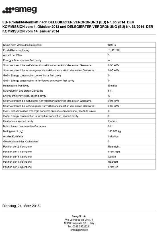 Der SMEG TR4110X ist ein Kochzentrum mit einer Breite von 110 cm, Induktionskochzonen und 3 Backöfen. Er verfügt u.a. über einen Infrarot-Grill, eine Halogenbeleuchtung, 5-fach Restwärmeanzeige und Vollglasinnentüren.