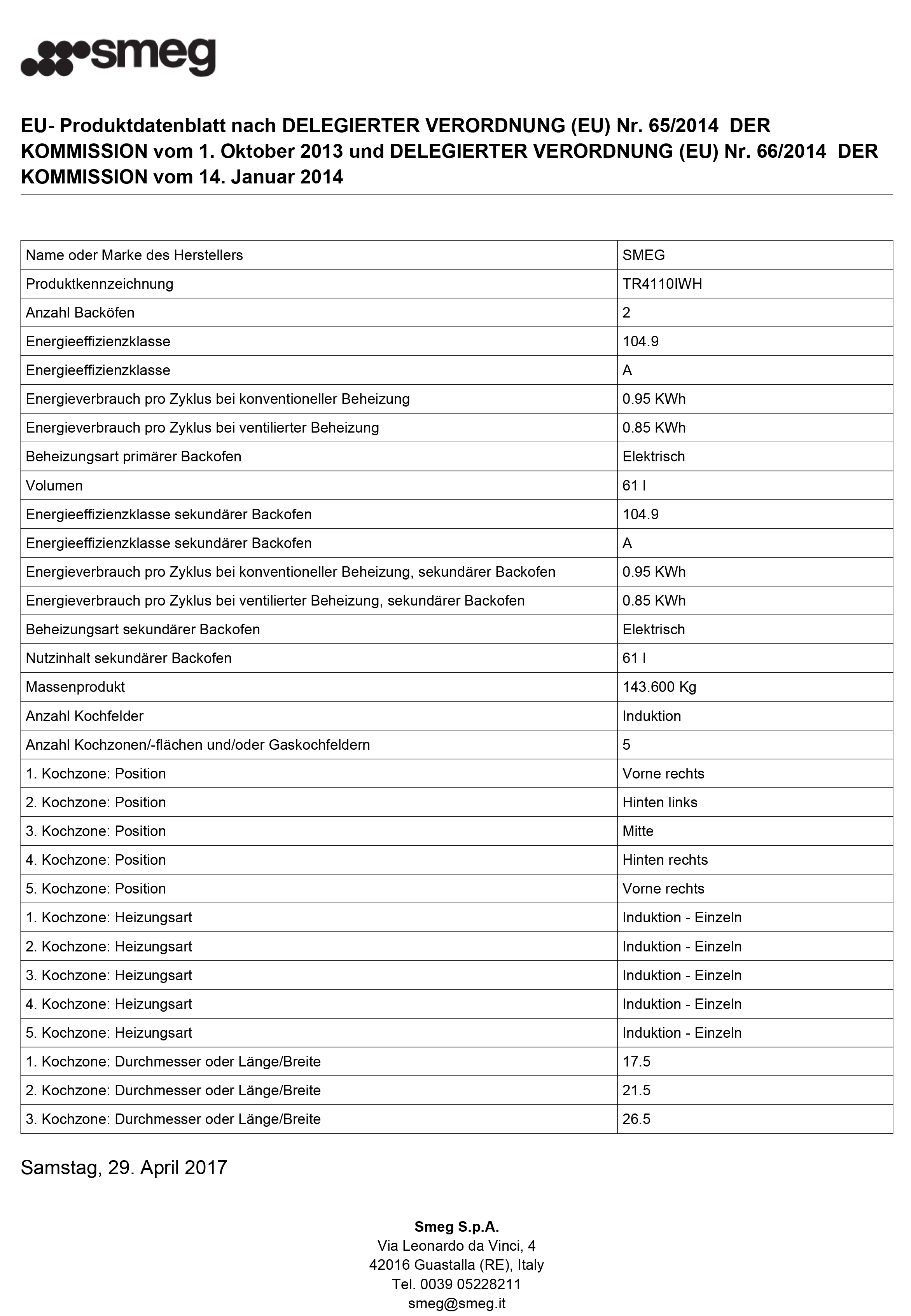 SMEG TR 4110IWH Victoria Kochzentrum, Weiss, Induktionskochfeld mit 5 Kochzonen, 3 Backöfen, Vollglasinnentüren, Infrarot-Großflächengrill, Ever-Clean-Emaillierung, EEK: A/A