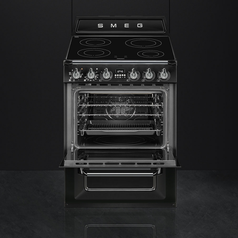 SMEG TR60IBL Kochzentrum, Schwarz, 60 cm, 4 Induktionskochzonen, Turbo-Doppelheissluft, Vapor Clean, Energieeffizienzklasse A