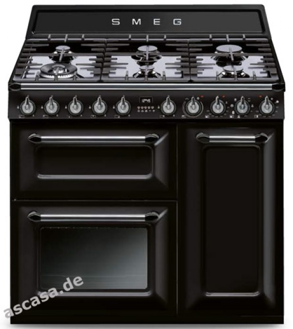 Der SMEG TR93XD ist ein Gas-Kochzentrum mit einer Breite von 90 cm und 3 Backöfen. Er verfügt u.a. über einen Infrarot-Grill, eine Halogenbeleuchtung, Einhandzündvorrichtung und Vollglasinnentüren.
