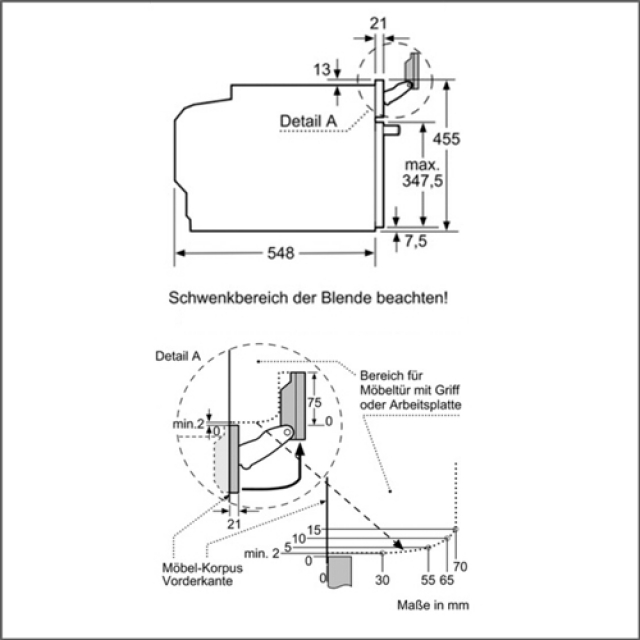 • Nischenmaße (HxBxT): 450 mm - 455 mm x 560 mm - 568 mm x 550 mm