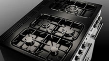 Die beliebteste Variante des Range Cooker verbindet die Schnelligkeit eines Gaskochfeldes mit der Flexibilität und gleichmässigen Wärmeverteilung eines Elektro-Ofens. Die Dual-Fuel Technologie (Erdgas oder Flüssiggas) ist wahlweise verfügbar. Wenn Sie mit Gas kochen möchten, Ihr Haus aber keinen Gasanschluss hat, können alle Range-Cooker auf Flüssiggas (Propangas) umgerüstet werden. Der modellabhängig mitgelieferte Umrüstsatz muss vor Ort von einem Fachinstallateur montiert werden. Alle Gaskochfelder sind mit einer Einhandzündung oder Zweihandzündung (je nach Modell) ausgestattet. Alternativ zum Gaskochfeld stehen bei vielen Rangecookern die Elektro-Kochfelder in Glaskeramik oder Induktion zur Wahl.