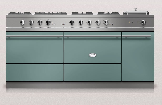 Lacanche Sully 1800-D Modern, Rangecooker, Farbe Bleu Corail, 180,5 cm, individuelle Gestaltung von Kochfeldern, Gasbrennern, Backofen und Ausführung der Beschläge, mit 5 Jahren Garantie!