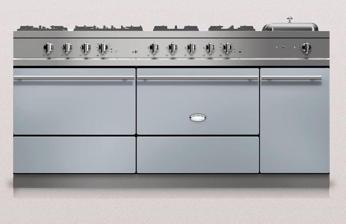 Lacanche Sully 1800-D Modern, Rangecooker, Farbe Bleu Delft, 180,5 cm, individuelle Gestaltung von Kochfeldern, Gasbrennern, Backofen und Ausführung der Beschläge, mit 5 Jahren Garantie!