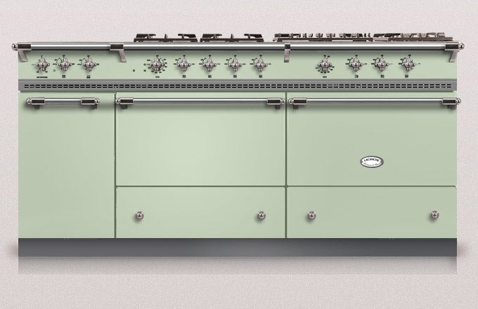 Lacanche Sully 1800-G Classic, Rangecooker, Farbe Vert Tilleul, 180,5 cm, individuelle Gestaltung von Kochfeldern, Gasbrennern, Backofen und Ausführung der Beschläge, mit 5 Jahren Garantie!