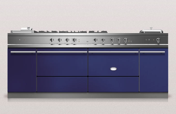 Lacanche Sully 2200 Modern, Rangecooker, Farbe Bleu Francais, 180,5 cm, individuelle Gestaltung von Kochfeldern, Gasbrennern, Backofen und Ausführung der Beschläge, mit 5 Jahren Garantie!