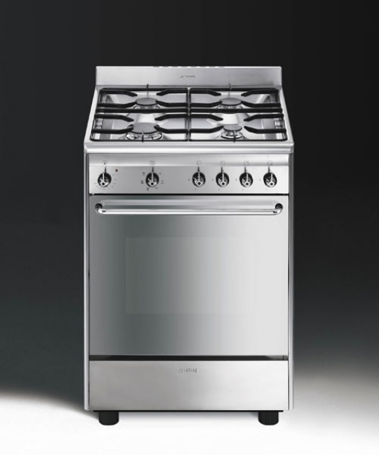SMEG SCD60EMX 9 Kombi-Standherd, Edelstahl, 60 cm, neutrales Design, Gaskochfeld mit 4 Kochzonen, 1 Backofen, 5 Backebenen, abnehmbare Backofentür, Umluftfunktion, Energieeffizienzklasse A