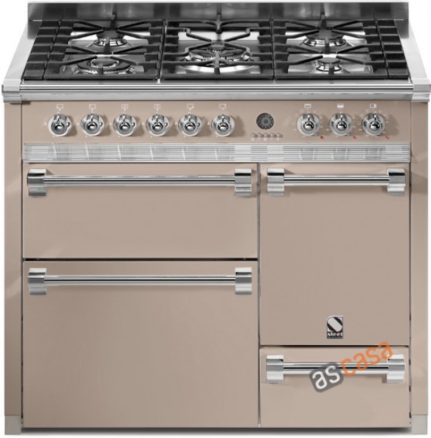 Steel Ascot 100, Rangecooker, Farbe Sabbia, 100 cm, Multifunktions-Backofen, 5 Gasbrenner, 3 Öfen, A10FFF-D-4MSA, mit 5 Jahren Garantie!
