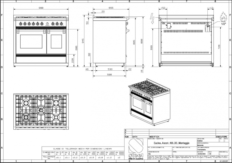 Elektronischer Ofen mit Kurzzeitwecker, Programmierung der Gar- und Backzeiten, mit dreifacher Verglasung für eine "kalte" Ofentüre und somit mehr Sicherheit und weniger Energieverlust.