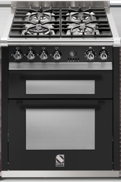 Steel Ascot 70, Rangecooker, Farbe Schwarz, 70 cm, Multifunktions-Backofen, 2 Öfen, 4 Gasbrenner, A7FF-4BA, mit 5 Jahren Garantie!