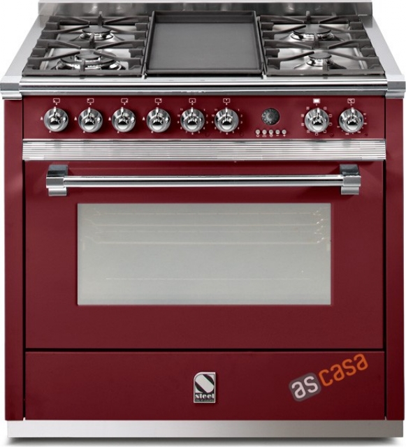 Steel Ascot 90, Rangecooker, Farbe Bordeauxrot, 90 cm, Combisteam-Backofen, 6 Gasbrenner, A9S-6WBR, mit 5 Jahren Garantie!