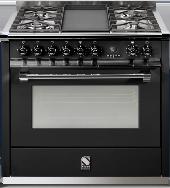 Steel Ascot 90, Rangecooker, Farbe Schwarz, 90 cm, Multifunktions-Backofen, 4 Gasbrenner, A9F-4GBA, mit 5 Jahren Garantie!