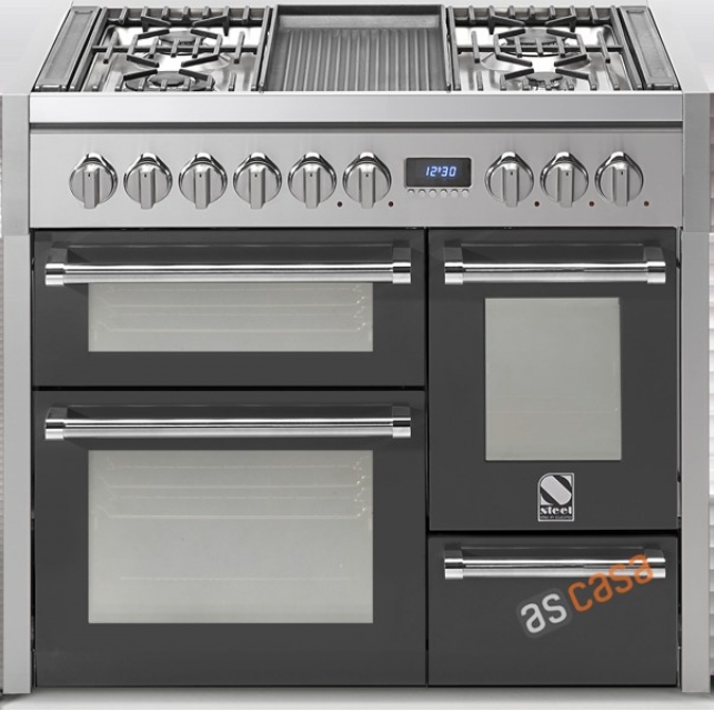 Steel Genesi 100, Rangecooker, Farbe Anthrazit, 100 cm, Multifunktions-Backofen, 3 Öfen, 6 Gasbrenner, G10FFF-6WAN, mit 5 Jahren Garantie!
