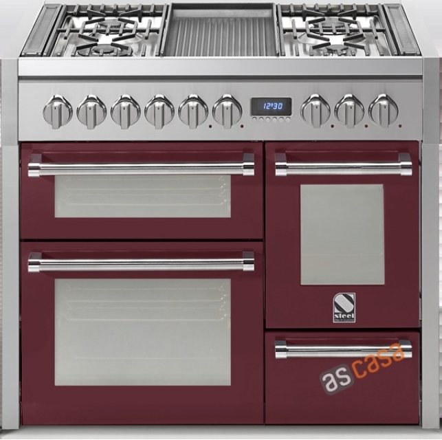 Steel Genesi 100, Rangecooker, Farbe Bordeauxrot, 100 cm, Multifunktions-Backofen, 3 Öfen, 6 Gasbrenner, G10FFF-4MBR, mit 5 Jahren Garantie!