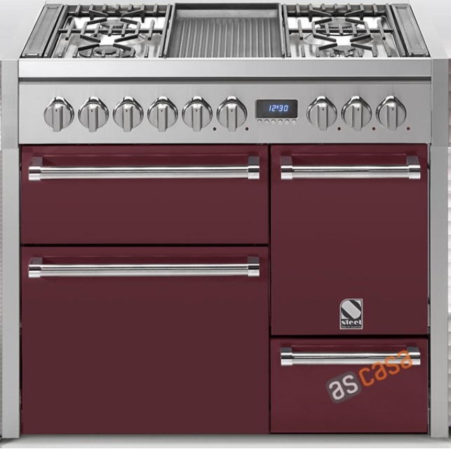 Steel Genesi 100, Rangecooker, Farbe Bordeauxrot, 100 cm, Multifunktions-Backofen, 3 Öfen, 4 Gasbrenner, G10FFF-D-4TBR, mit 5 Jahren Garantie!