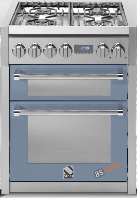 Steel Genesi 70, Rangecooker, Farbe Celeste, 70 cm, Multifunktions-Backofen, 2 Öfen, 4 Gasbrenner, G7FF-4CE, mit 5 Jahren Garantie!