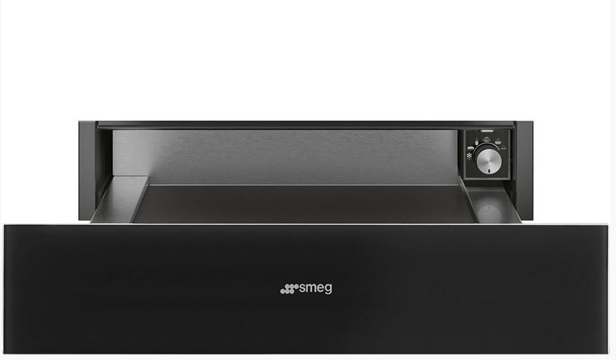 CPR115N Wärmeschublade, Schwarzglas, Vollglasfront in Silberglas, Push - Pull Öffnung (grifflos), Bedienung über Drehknebel