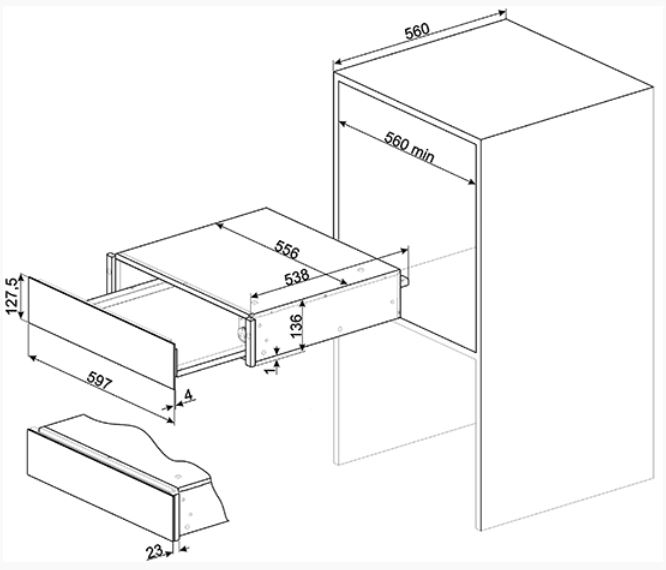 • Dimensionen: B x H x T: 597 x 135 x 538 mm