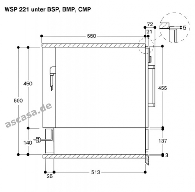 Einbau BSP/BMP/CMP direkt über WS in Nische 59 cm ohne Zwischenboden