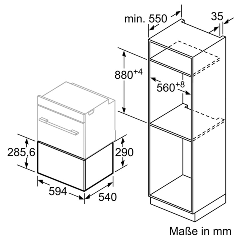 • Nischenmaße (HxBxT): 290 mm x 560 mm - 568 mm x 550 mm