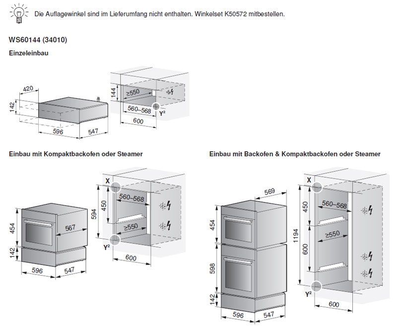 Nischentiefe: 550 mm