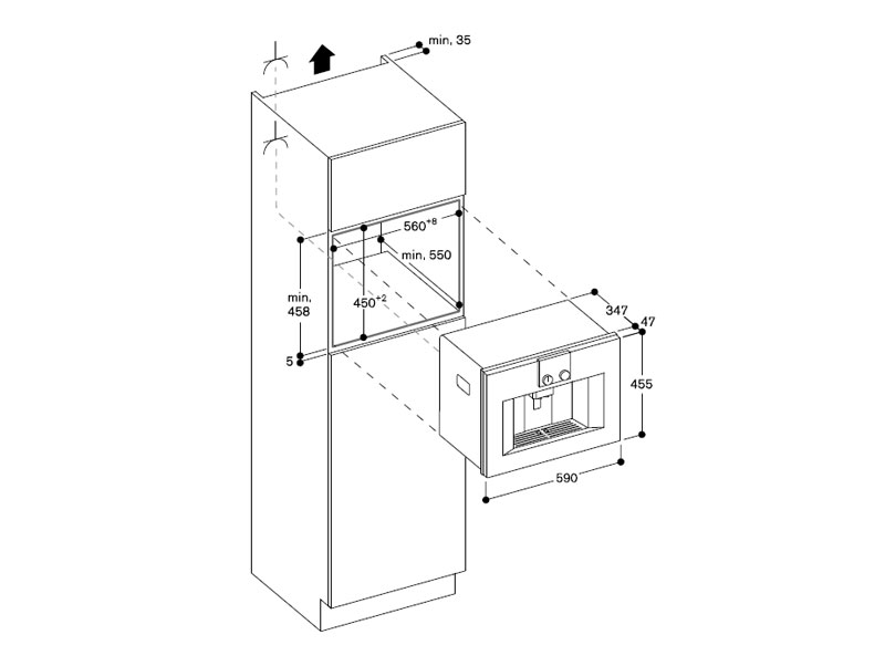 - Einbau in 59-cm-Standardnische direkt über 14 cm hohe Wärmeschublade