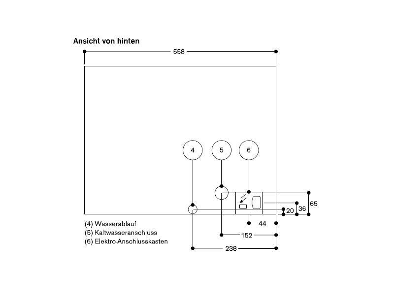 - Wasseranschluss (1) für Zulaufschlauch immer zugänglich halten; nicht direkt hinter dem Gerät positionieren