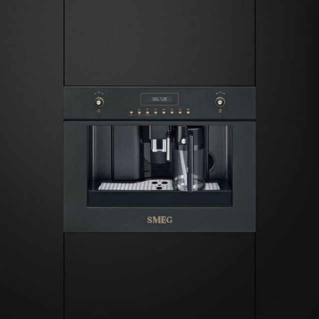 SMEG CMS8451A Nostalgie Einbau-Kaffeevollautomat, Anthrazit Gold/Messing Antik-Design, mit 5 Jahren Garantie!