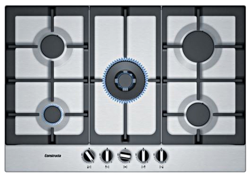 Constructa CA 174552, Autarkes Gaskochfeld, Edelstahl-Design, 5 Kochstellen-Brenner, 75 cm, mit 5 Jahren Garantie!