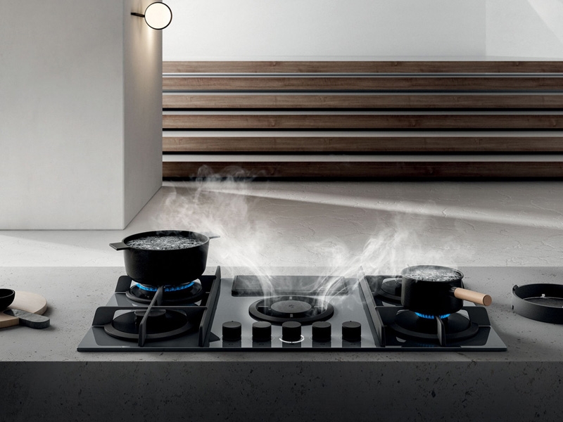 Die Elica Nikolatesla Flame GRF88 ist ein Gas Kochfeld mit 5 Kochzonen und integriertem Dunstabzug und einer Breite von 88 cm. Es verfügt u.a. über Sicherheitsabschaltung und Rotavio-Bedienung.