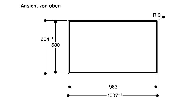 - Das Kochfeld eignet sich für den Einbau auf die Arbeitsplatte aufgesetzt