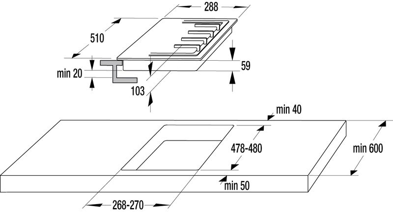 • Einbaumaß (HxBxT in mm): 79x270x480