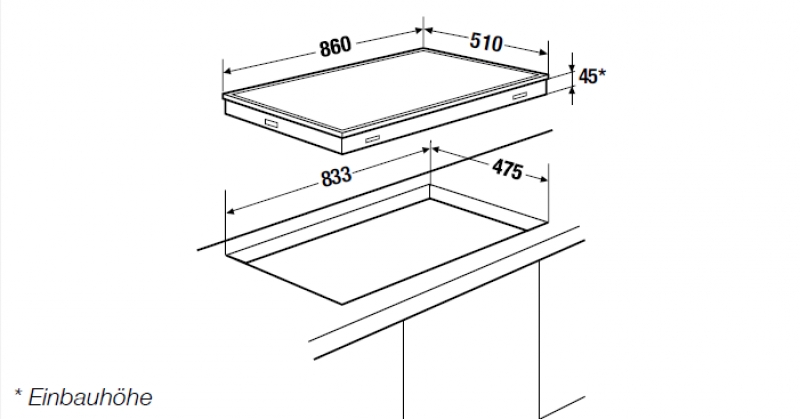 - Ausschnittmaße (mm/BxT): 833 x 475