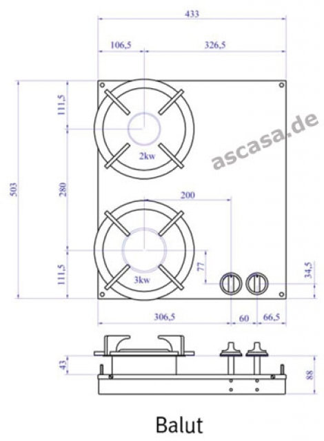 PITT® by Reginox Balut Gas-Modul für Flaschengasbetrieb, 2 Aluminium-Brenner